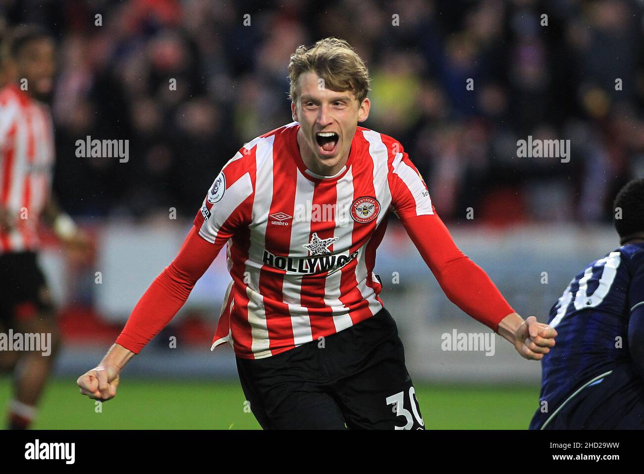 London Uk 02nd Jan 2022 Mads Roerslev Of Brentford Celebrates After He Scores His Teams Second Goal Premier League Match Brentford V Aston Villa At The Brentford Community Stadium In Brentford London